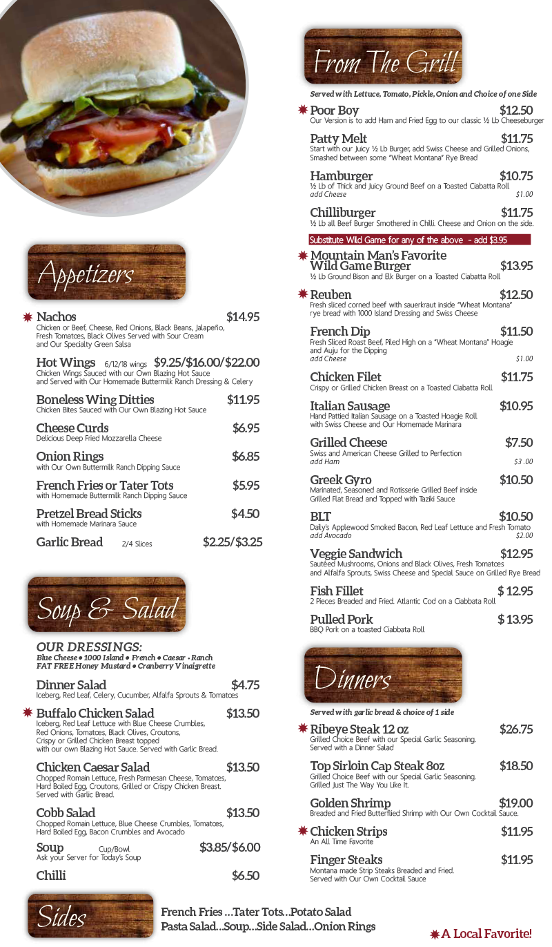 including pizzas, soups, salads, specialty sandwiches, steaks, burgers and more! We even offer pizza with gluten free crust.